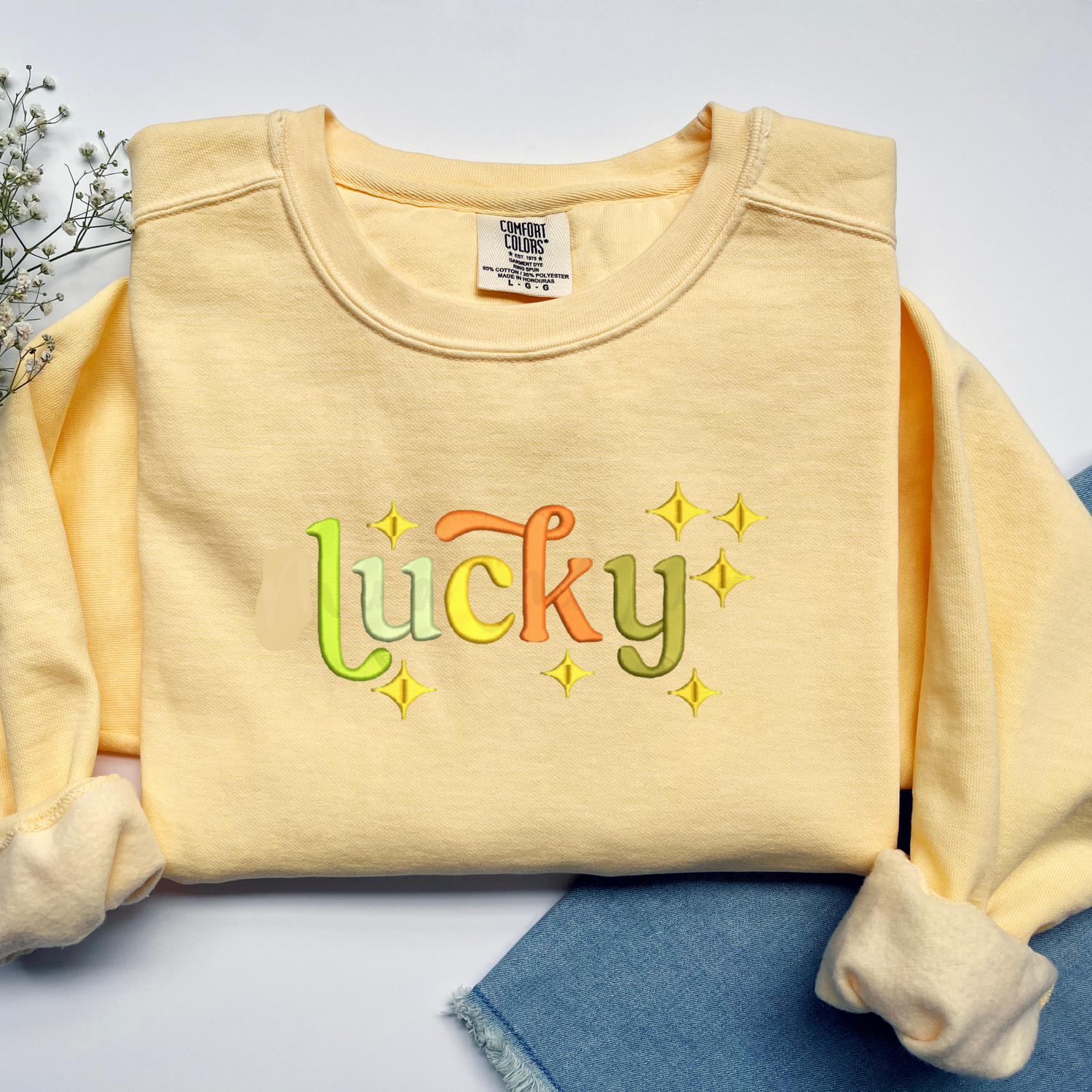 Embroidered Sweatshirt - Retro Lucky