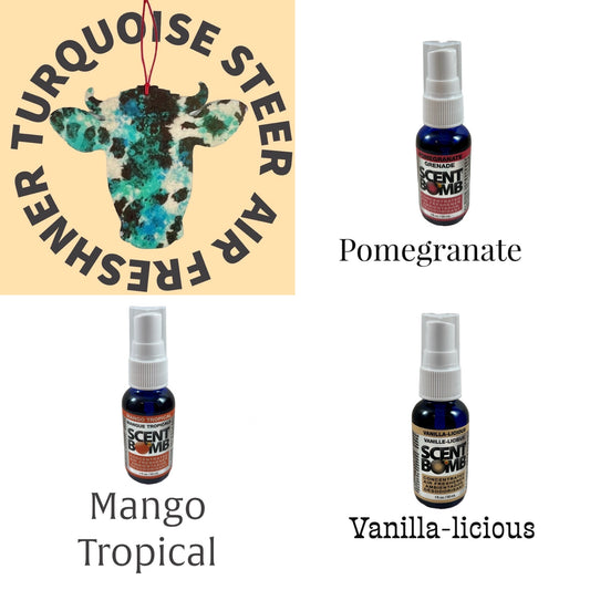 Air freshener Turquoise Steer design and 1 fl oz Scent Bomb