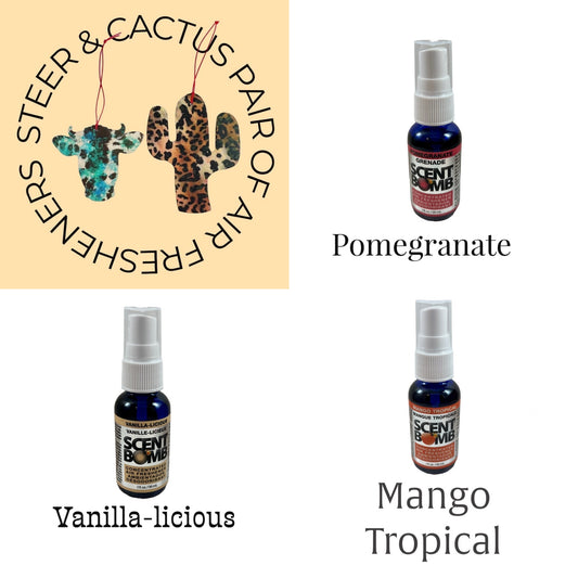 Air Fresheners Pair of 2 Turquoise Steer & Leopard cactus designs and 1 fl oz Scent Bomb