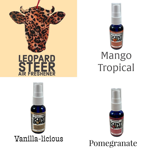 Air freshener Leopard Steer Design and 1 fl oz Scent Bomb