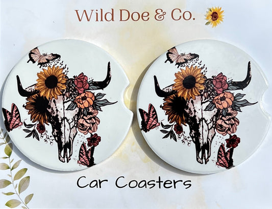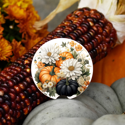 Ceramic Car Coaster Set - Black Pumpkin & Flowers
