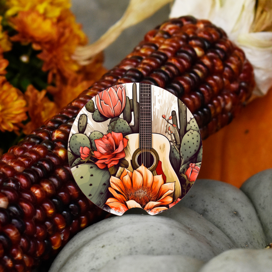 Ceramic Car Coaster Set - Cactus & Guitar