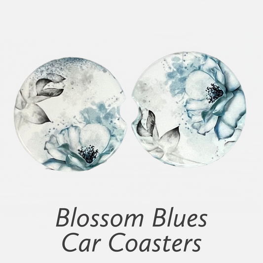Ceramic car coaster set - Blossom Blues