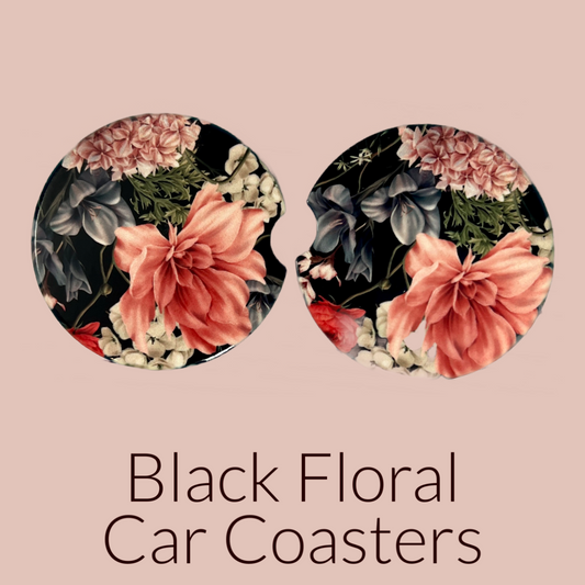 Ceramic car coaster set - Black Floral