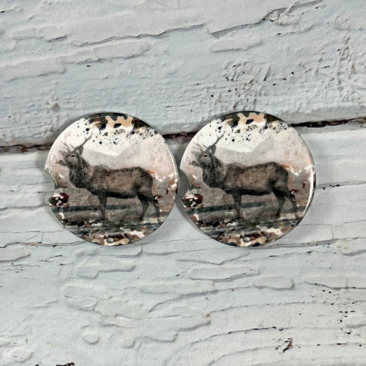 Ceramic car coaster set - Camo Elk