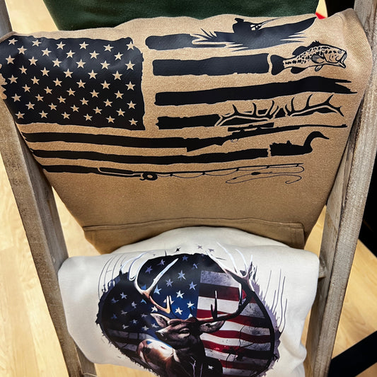 Sweatshirt- American Flag & Deer