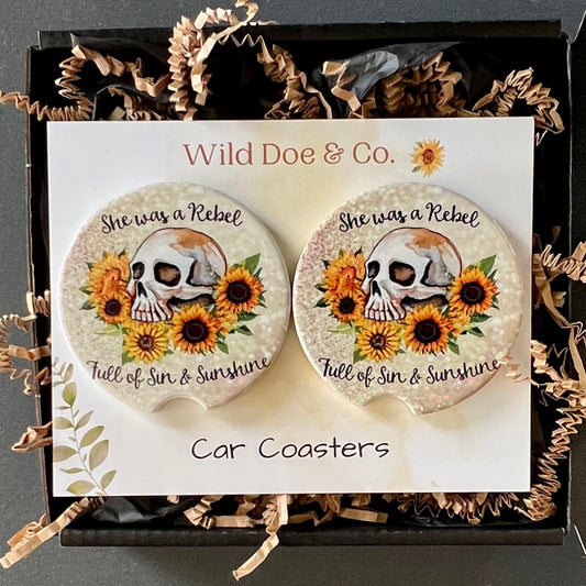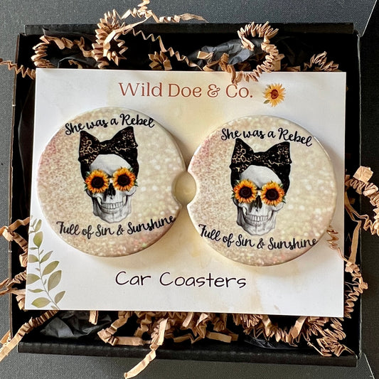 Ceramic car coaster set She was a Rebel full of Sin & sunshine