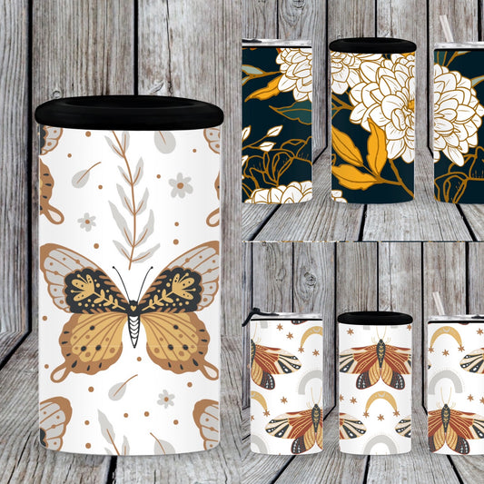 Cooler bottle/can/cup 12oz - Boho Black Garden