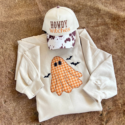 Embroidered Sweatshirt - Vintage Plaid Ghost & Bats
