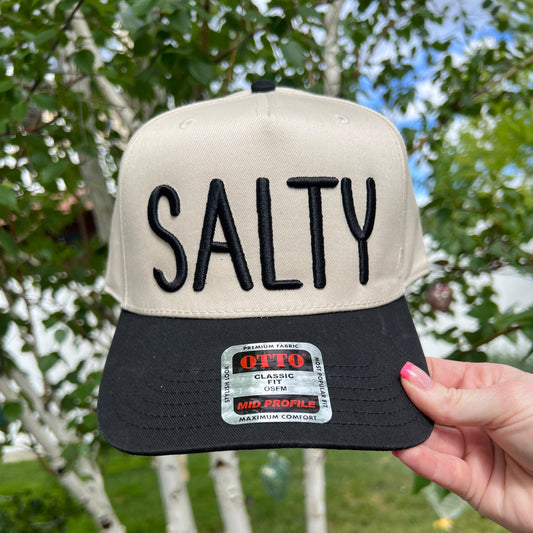 Embroidered Hats- Salty Puffy letter 2-tone Vintage trucker hat