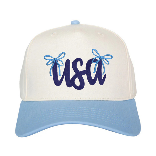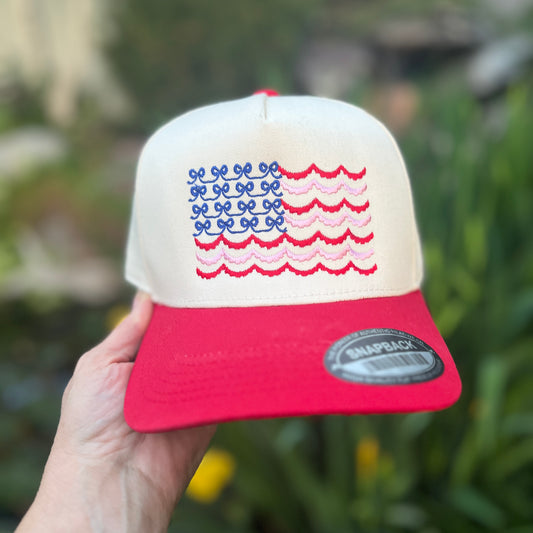 Embroidered Hats- Scallop and Bows American Flag Vintage trucker hat