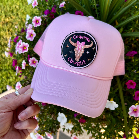 Embroidered Hats- Skull Coquette Cowgirl Patch Hat