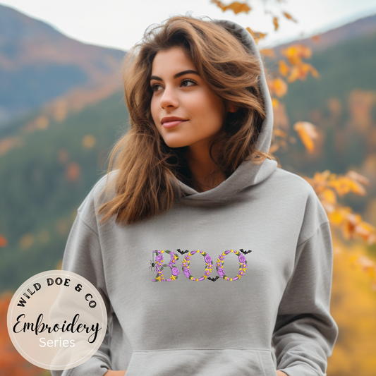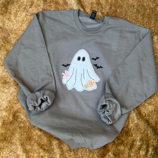 Embroidered Sweatshirt - Wildflower Sherpa Ghost Appliqué