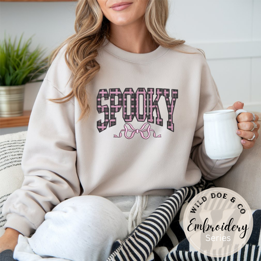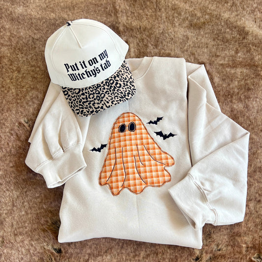 Embroidered Sweatshirt - Vintage Plaid Ghost & Bats