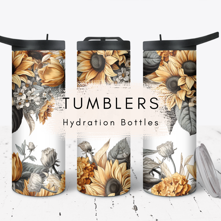 Traveler Tumbler 40 oz- Watercolor wildflowers & Bees