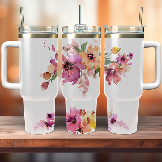 Traveler Tumbler 40 oz- Watercolor wildflowers