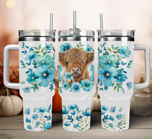 Traveler Tumbler 40 oz- Turquoise Flora Highlander Cow