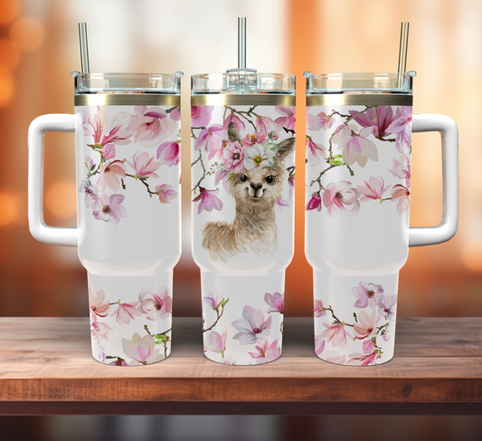 Traveler Tumbler 40 oz - cherry Blossom llama