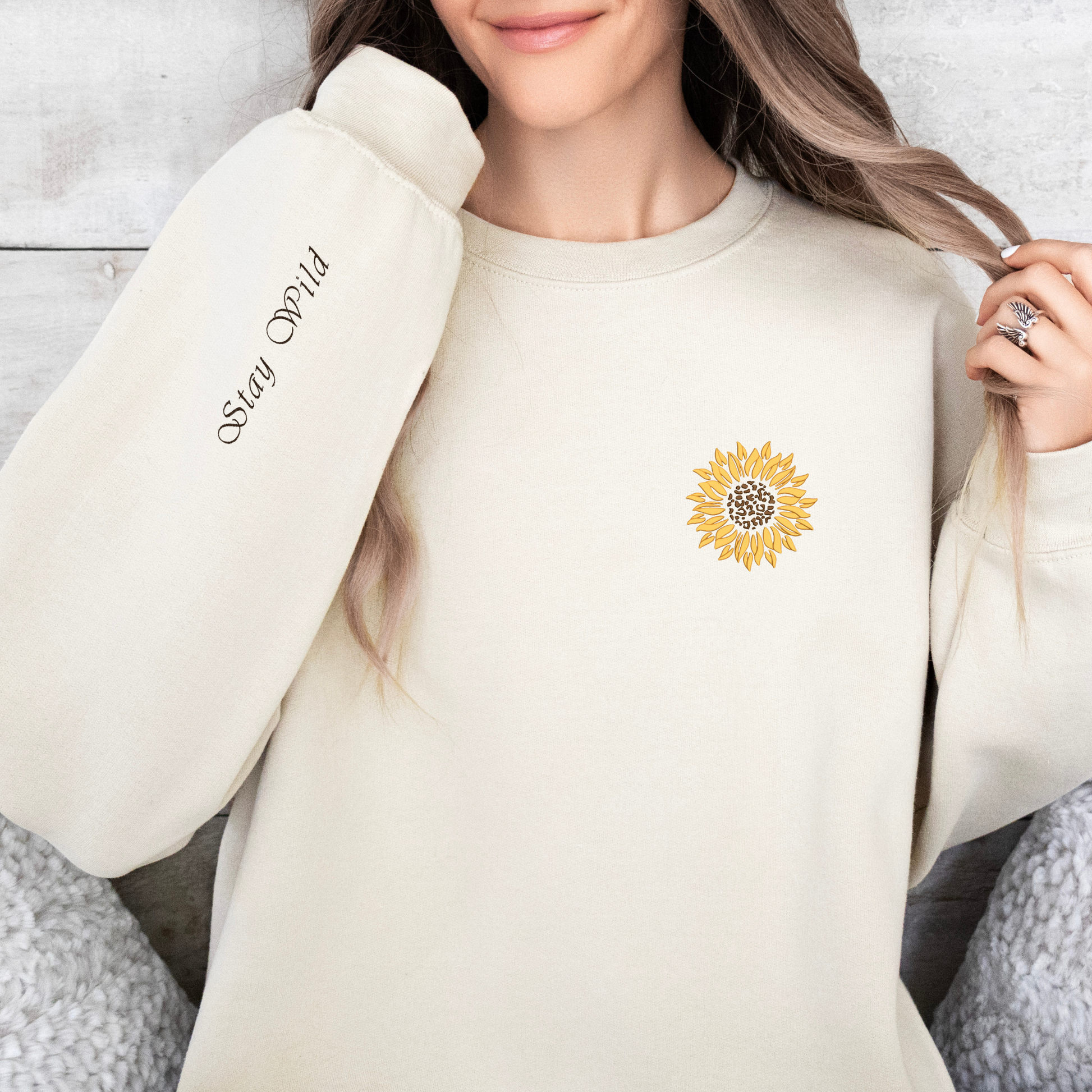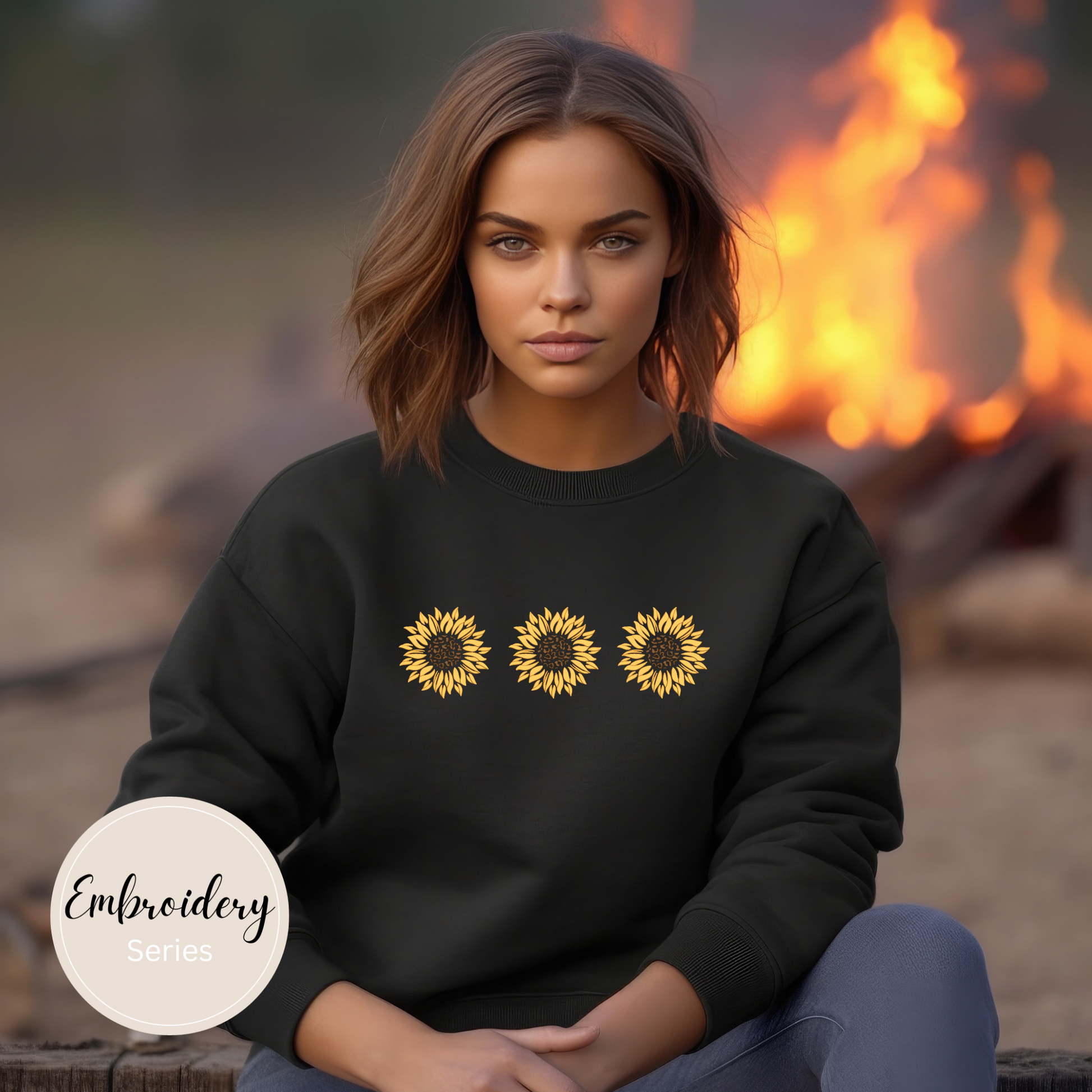 This cozy sweatshirt is perfect for gals who love Sunflowers! Made from soft and comfortable fabric, it features a beautiful embroidery of a sunflowers on the front. The embroidery adds a touch of charm and personality to the sweatshirt, making it a unique and stylish piece of clothing. Whether you're out for a walk with your furry friend or just lounging at home, this sweatshirt is sure to keep you warm and fashionable. Show off your love for dogs and make a statement with this adorable embroidered sweatshirt.