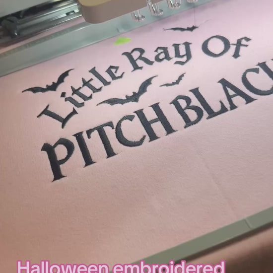 Introducing the trendiest fashion statement of the year - the Embroidered Sweatshirt with the "Little Ray of Pitch Black & bats" logo! Plus some random bats flying around.
