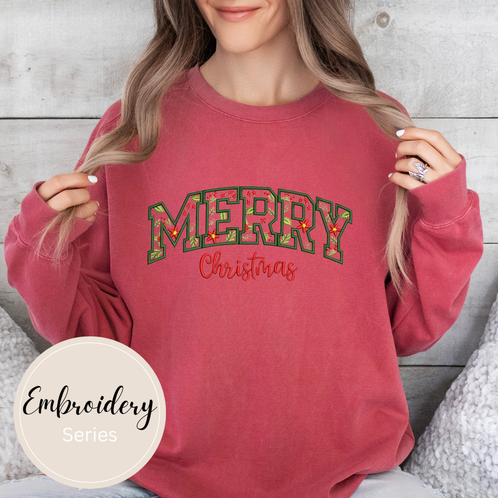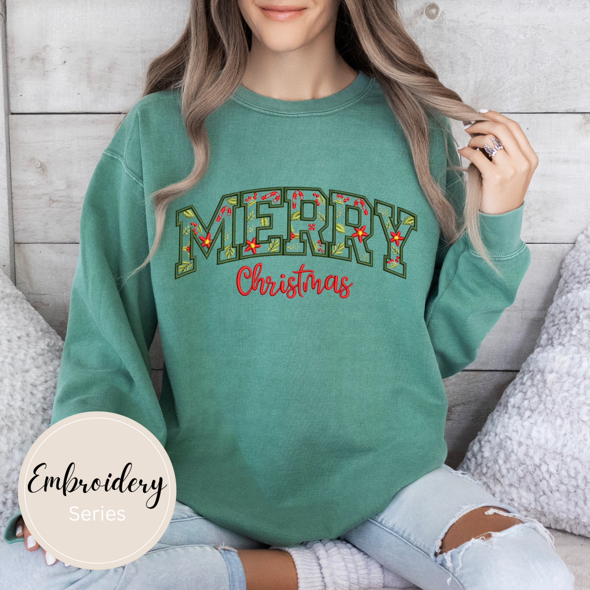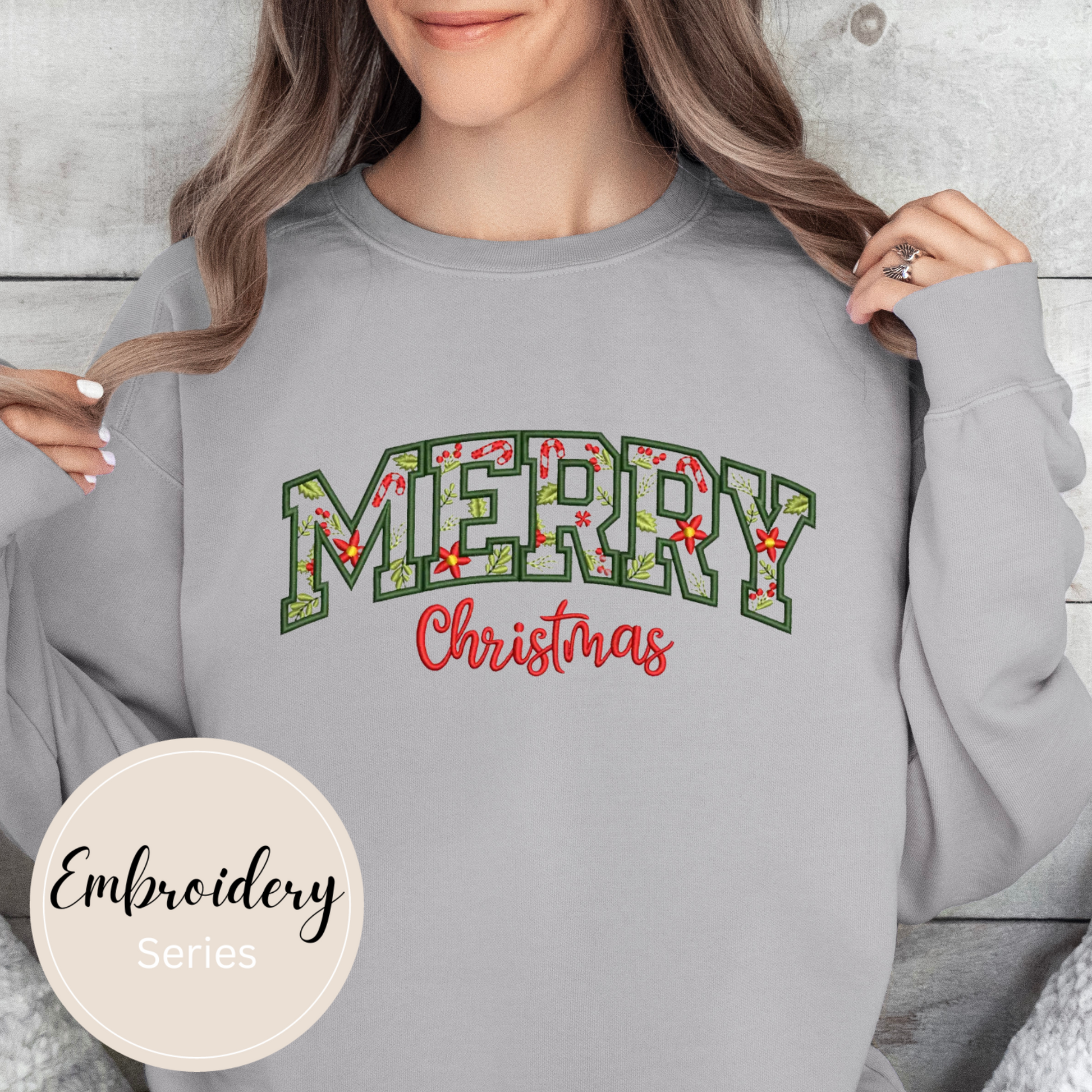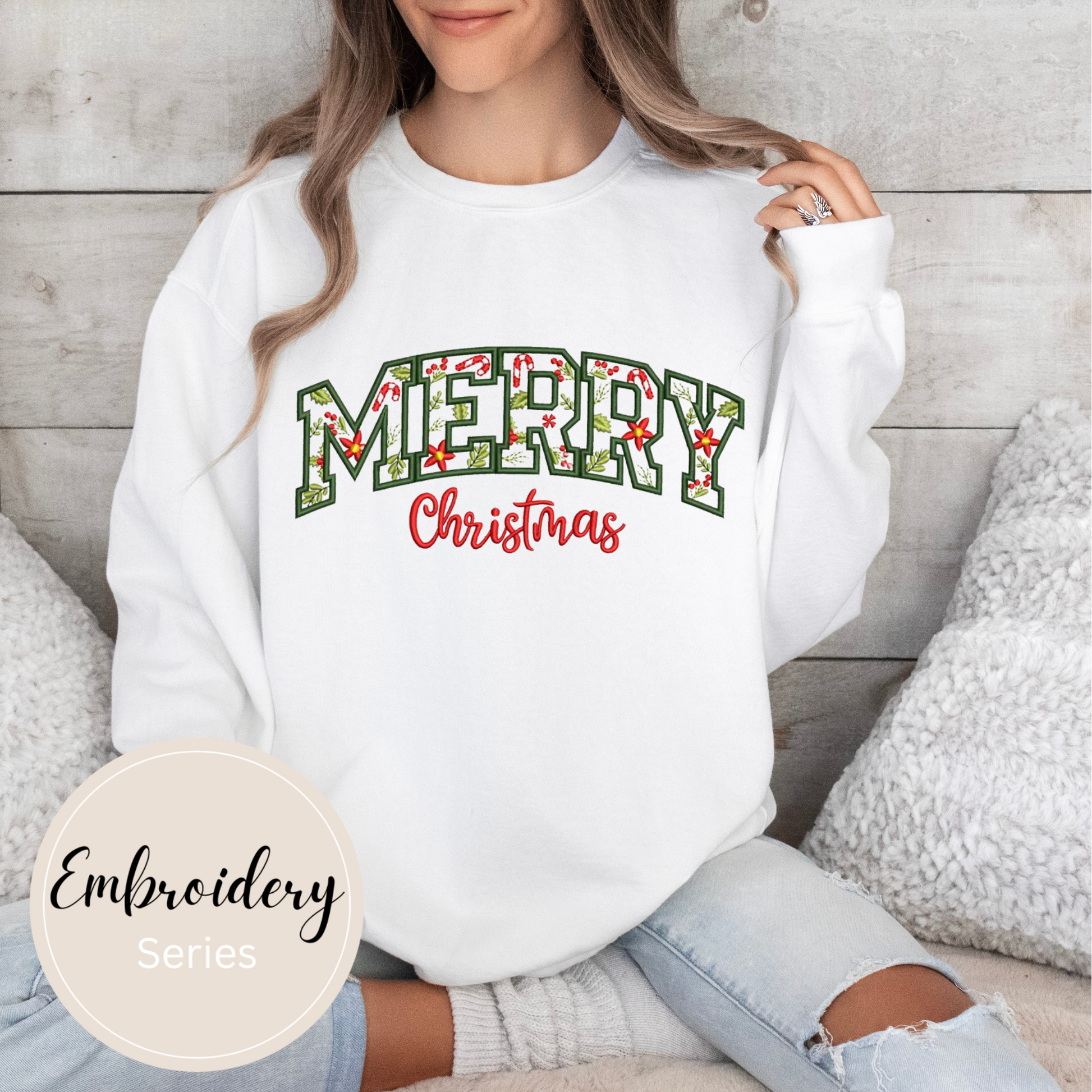 Introducing the trendiest fashion statement of the year - the Embroidered Sweatshirt with the "Merry Christmas" logo!