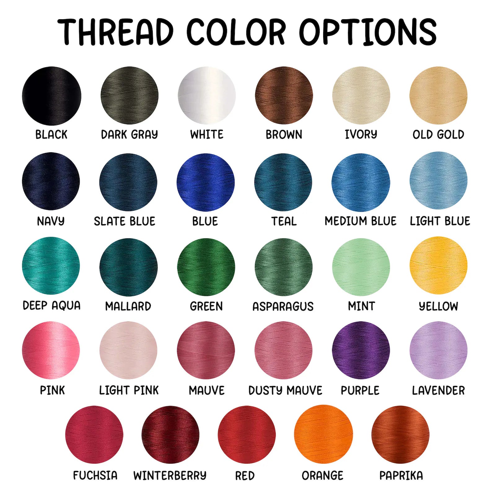 Threads will match color of sweatshirt unless you request another color combo in the comments.